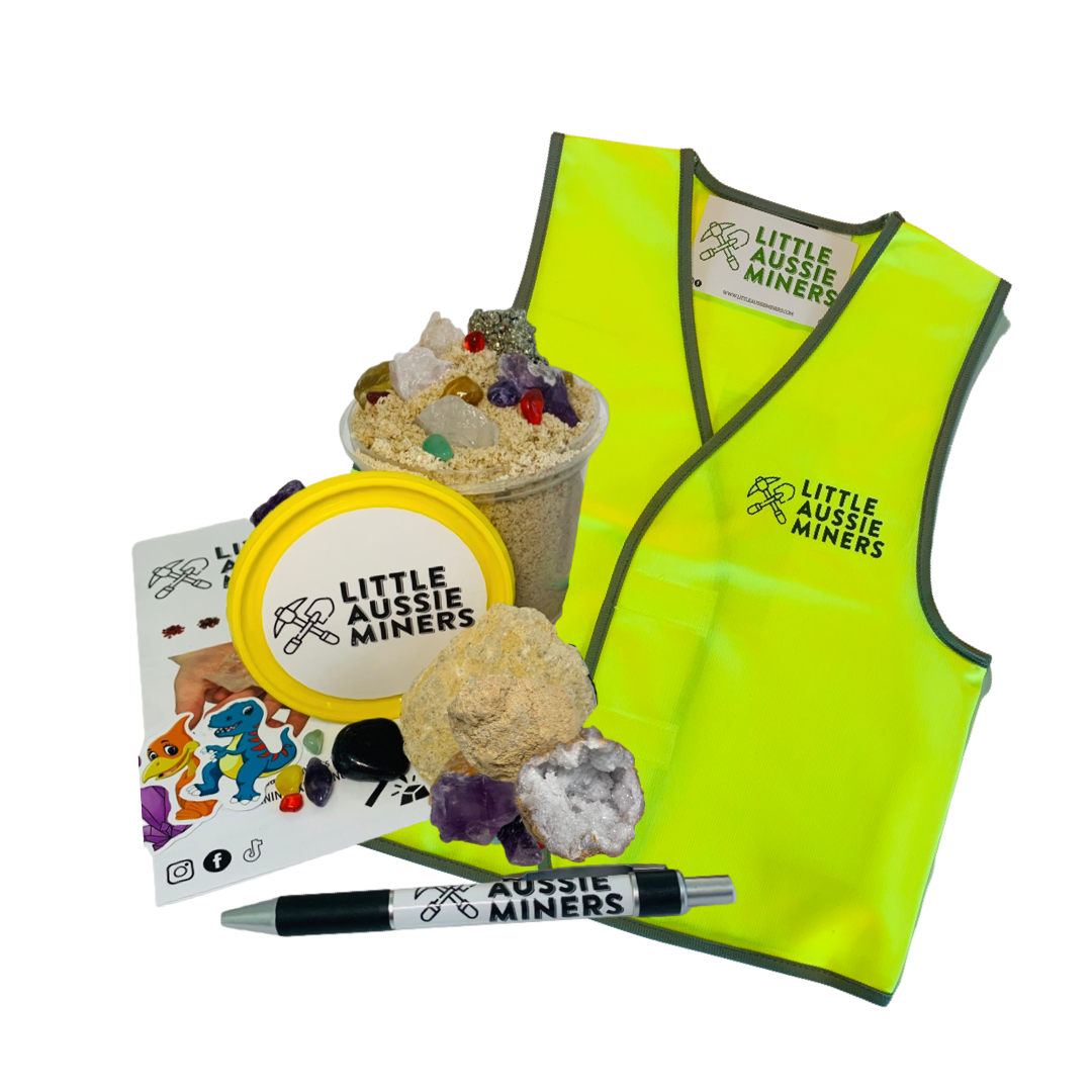 1 x Mining Cup 500g (5 Different Crystals ( Raw & Tumbled + Confetti Sand )