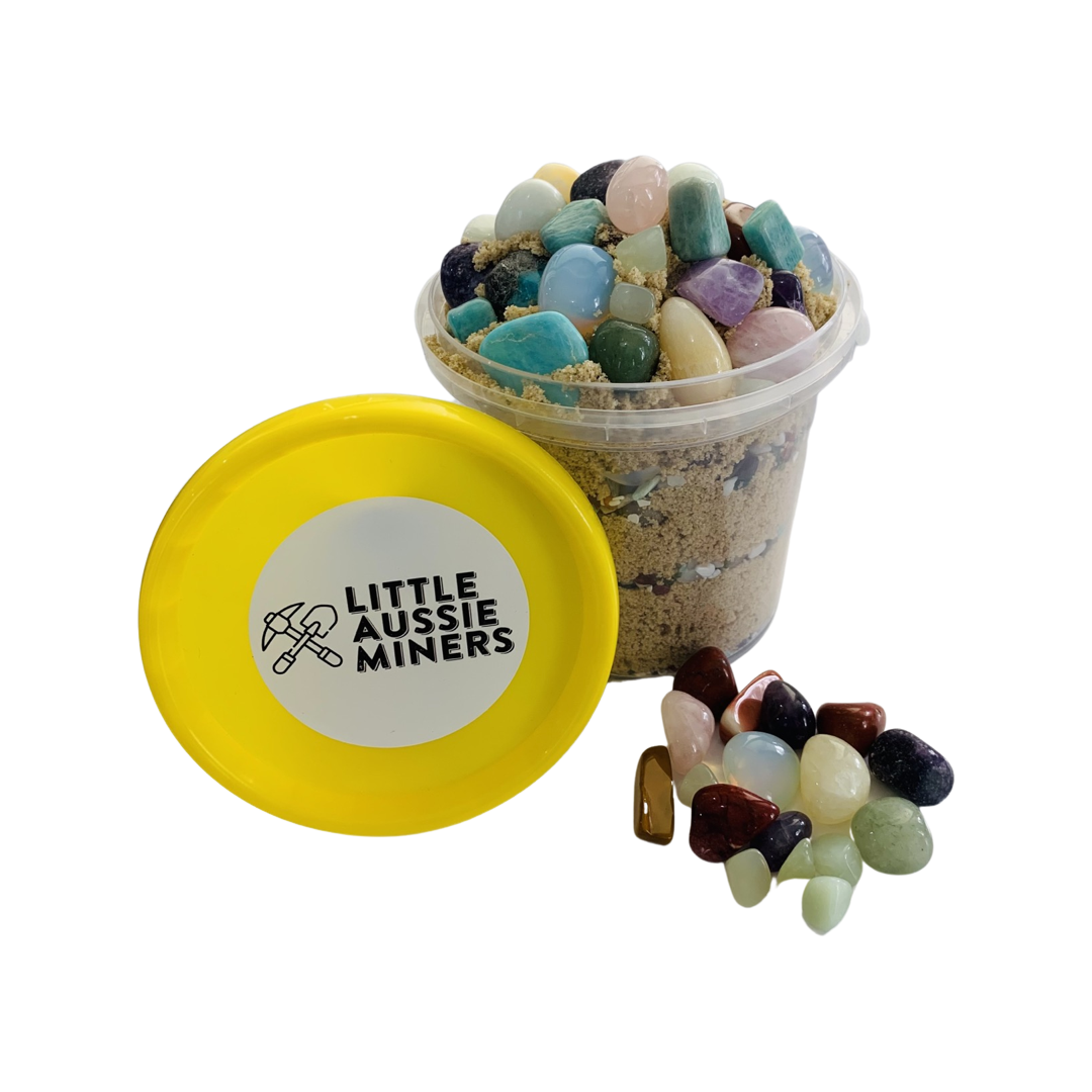 1 x 1.5kg Mining Bucket (8 Different Gemstones & Crystals (Tumbled - Various Sizes & Confetti Sand)